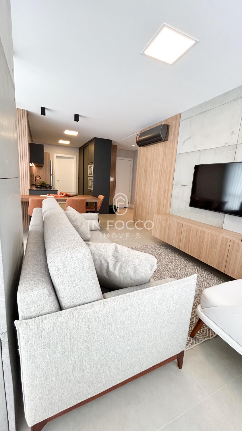 Com uma decoração moderna e mobiliado, o apartamento oferece uma série de facilidades, como elevador, gás central, área de serviço separada, churrasqueira, cozinha equipada, espera para lareira, hall de entrada, interfone, jantar e estar integrados, massa corrida, medidores individuais, pronto para morar, sacada aberta, sala de estar, ar-condicionado split, suíte e TV a cabo.